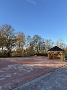Auf dem Gelände des Sportplatzes entstand ein großer gepflasterter Platz, wo zukünftig viele Veranstaltungen stattfinden können. Ebenfalls wurde ein Pavillion darauf errichtet. Für die neu installierte Boule-Bahn überreichte die Bürgermeisterin Hilke Looden als Geschenk ein Set mit Boule-Kugeln und zusätzlich einen Fußball.