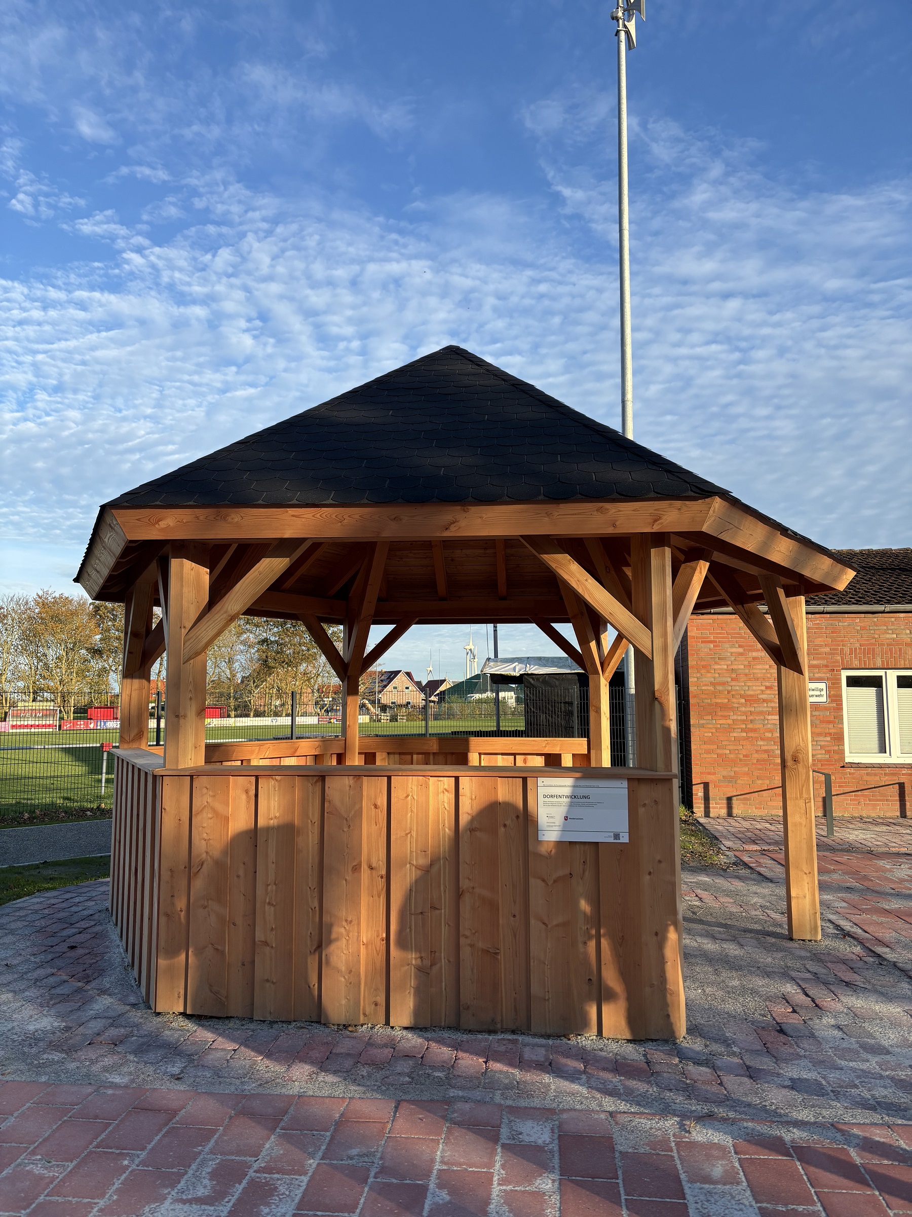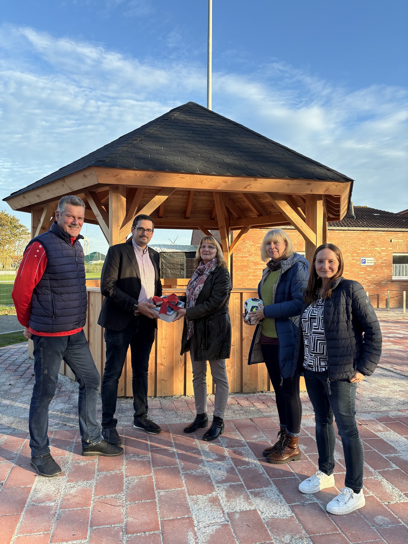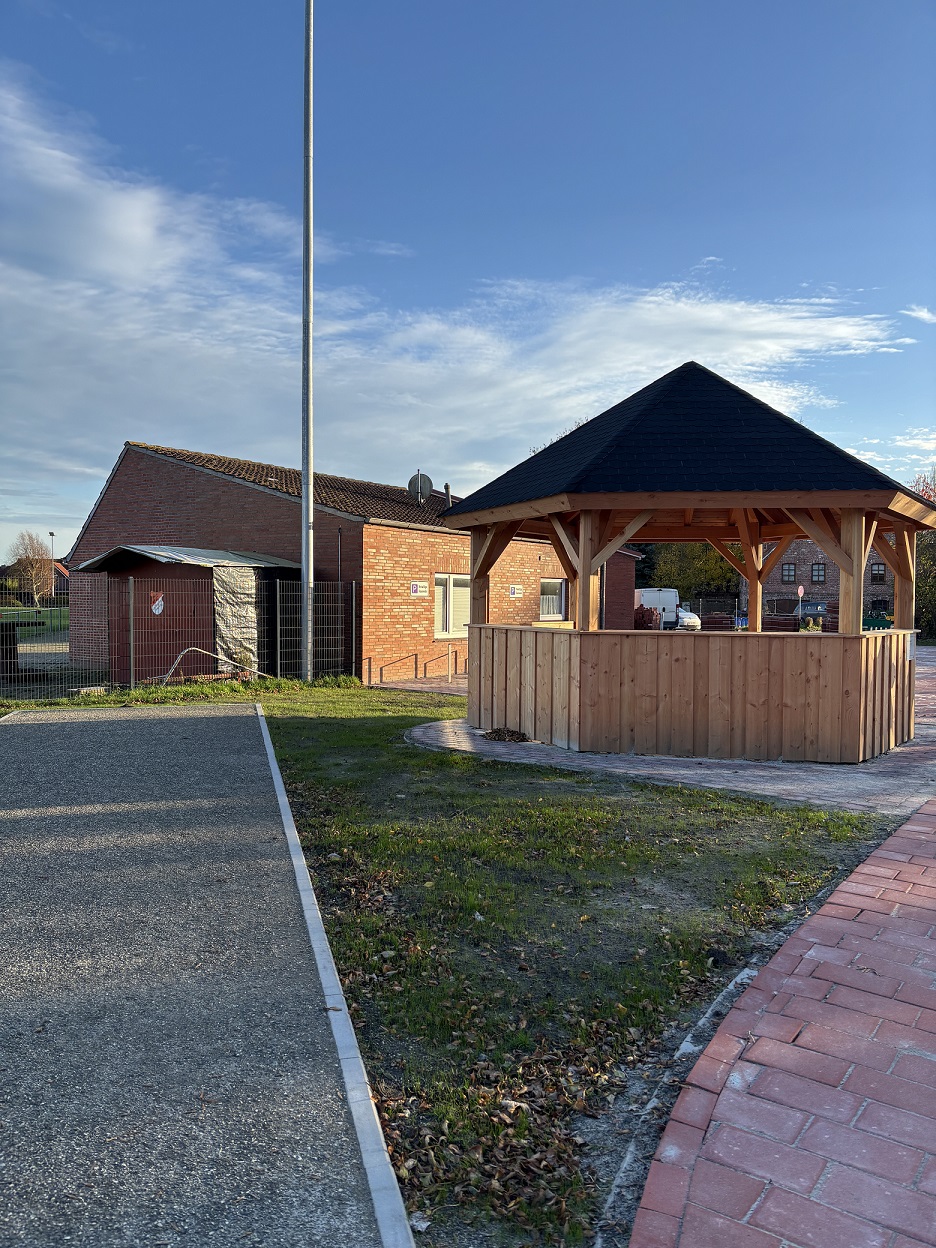 Auf dem Gelände des Sportplatzes entstand ein großer gepflasterter Platz, wo zukünftig viele Veranstaltungen stattfinden können. Ebenfalls wurde ein Pavillion darauf errichtet. Für die neu installierte Boule-Bahn überreichte die Bürgermeisterin Hilke Looden als Geschenk ein Set mit Boule-Kugeln und zusätzlich einen Fußball.