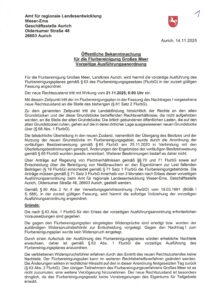 Öffentliche Bekanntmachung Flurbereinigung Großes Meer
