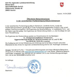 Öffentliche Bekanntmachung in der vereinfachten Flurbereinigung Eilsum-Grimersum