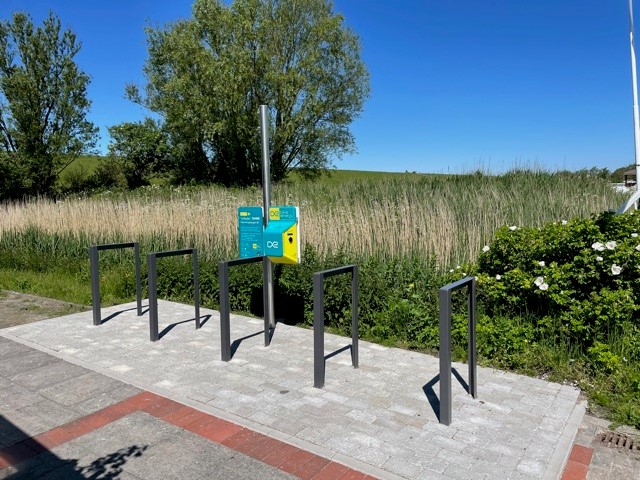 - Um die Erholungsfläche Trockenstrand besser erreichbar zu machen, ist eine Ladestation für E-Bikes geschaffen worden.