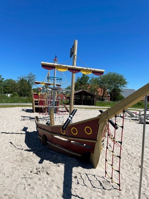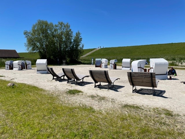 Der „Trockenstrand“, der vor etwa 25 Jahren binnendeichs am Deichfuß in in Upleward angelegt wurde, war dringend sanierungsbedürftig. Die Maßnahme umfasste unter anderem auch die Erneuerung der baulichen Anlagen (Pavillons) sowie die großen Spielgeräte in den Erholungsbereichen. Außerdem sind die die Wege erneuert und das Areal mit standortgerechten Gewächsen bepflanzt worden.