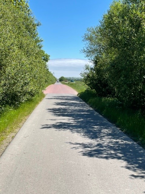 - Durch den Erhalt der vorhandenen Bausubstanz (Pavillon, Grillhütte, Bühne etc.) wird der Trockenstrand revitalisiert. Der Trockenstrand, der Campingplatz und die Wohnsiedlung „Deichblick“ sind durch die Verbindung Erbsenbindereistraße als Bestandteil des Dorfinnenbereichs Upleward zur sehen. Auf dem Grundstück des Campingplatzes wird enorm in Infrastruktur investiert. Weil ich die einzige Badestelle direkt hinter dem Deich am Trockenstrand befindet, wird die Erbsenbindereistraße enorm von Kindern und Jugendlichen mit Fahrrädern frequentiert. Der Ausbau der Straße mit Ausweichstellen und die Installation von Beleuchtungsanlagen hat die Sicherheit durch die Verbesserung der Verkehrsverhältnisse für Kinder und Jugendliche enorm erhöht